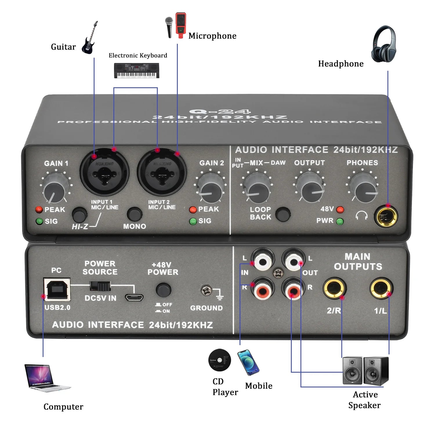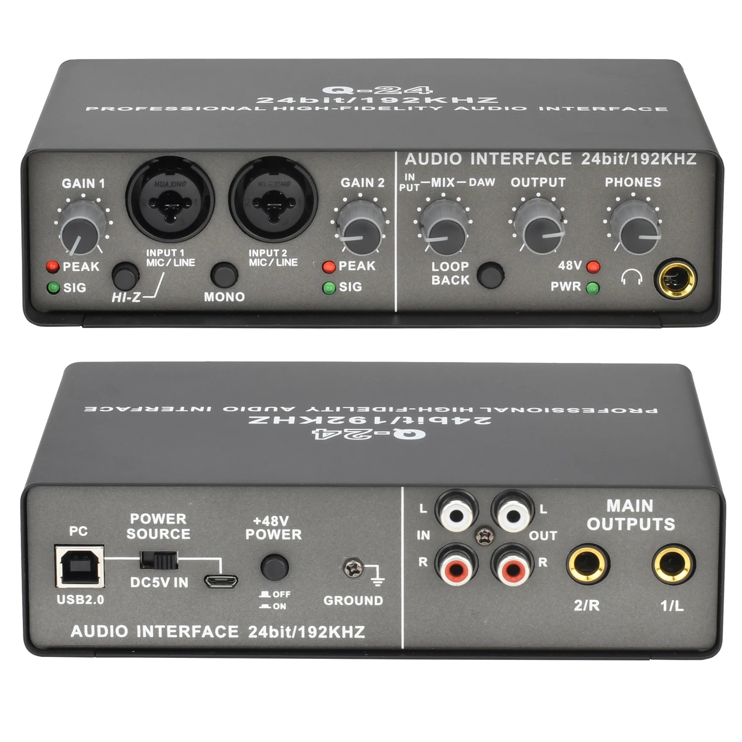 Teyun Q24 24Bit 192KHz Soundcard Loopback Audio Interface Stereo Direct Monitor External Usb Sound Card for Guitar Studio Record